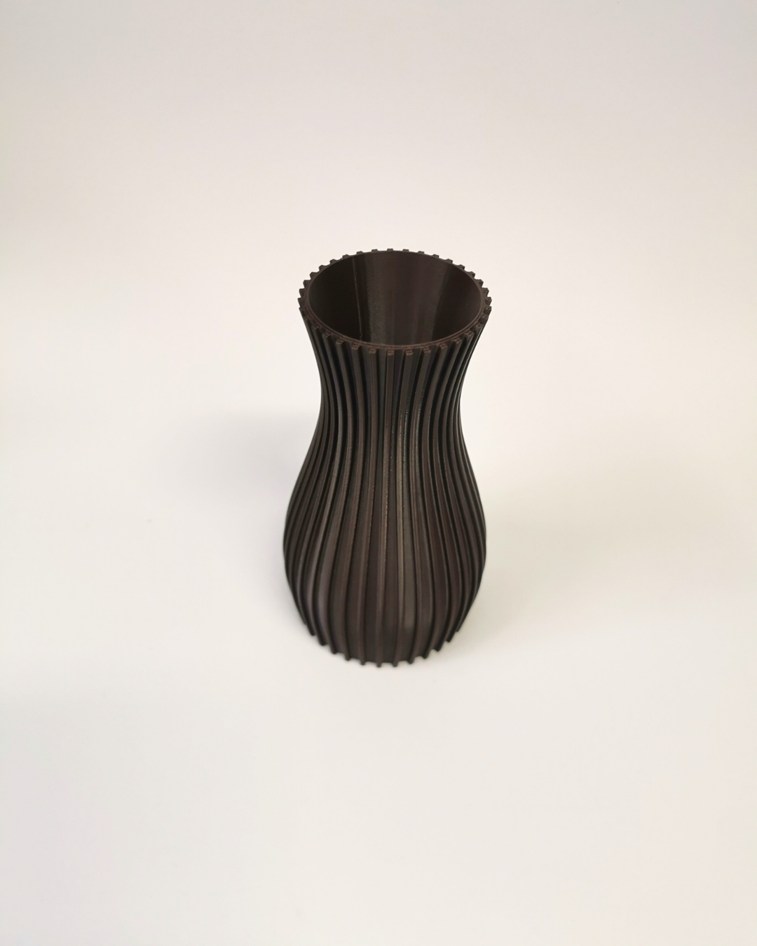 Vaza Elegant Stripe združuje klasično silhueto s sodobnim rebrastim vzorcem, ki ustvari občutek višine in elegance. 3D tisk omogoča popolno simetrijo in natančnost vsake linije, medtem ko izbira materialov in barv poskrbi, da se popolnoma poda k vsakemu slogu doma – od minimalističnega do tradicionalnega.
