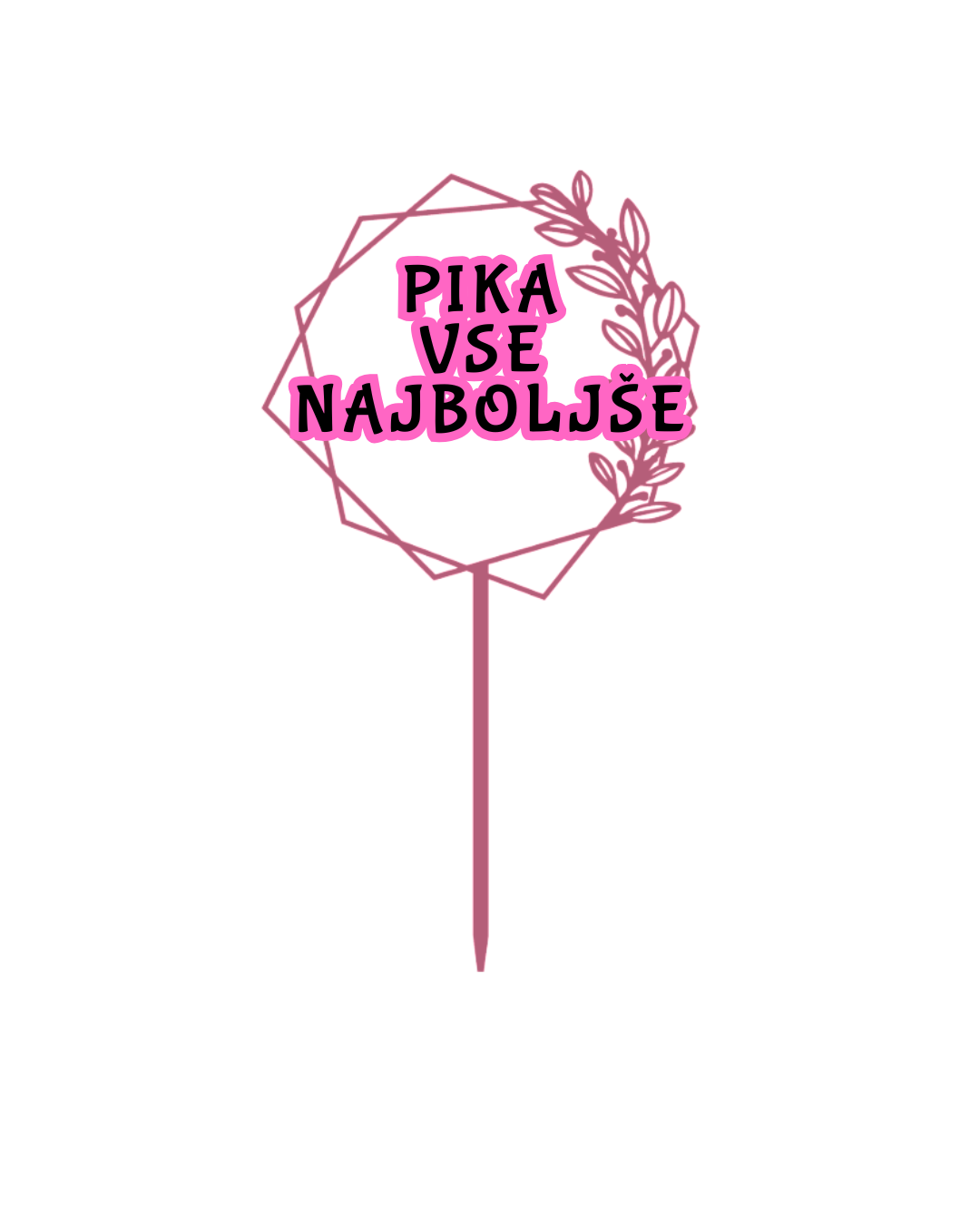 Naši personalizirani cake topperji so izdelani po naročilu in prilagojeni tvoji želji – ime, starost, napis ali simbol, ki ima poseben pomen zate.