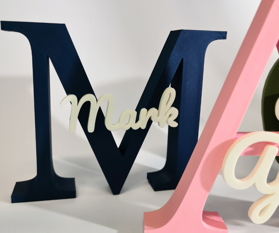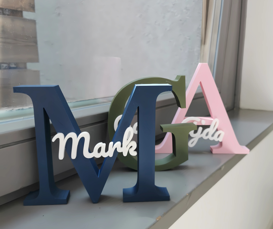 🖌️ Vsaka črka je natisnjena po meri in lahko vsebuje ime, besedo ali kratek napis, ki ga izbereš sam(a).